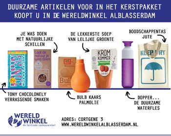 Duurzame kerstcadeaus bij Wereldwinkel Alblasserdam