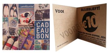 Wereldwinkel Alblasserdam heeft haar eigen cadeaubonnen.
